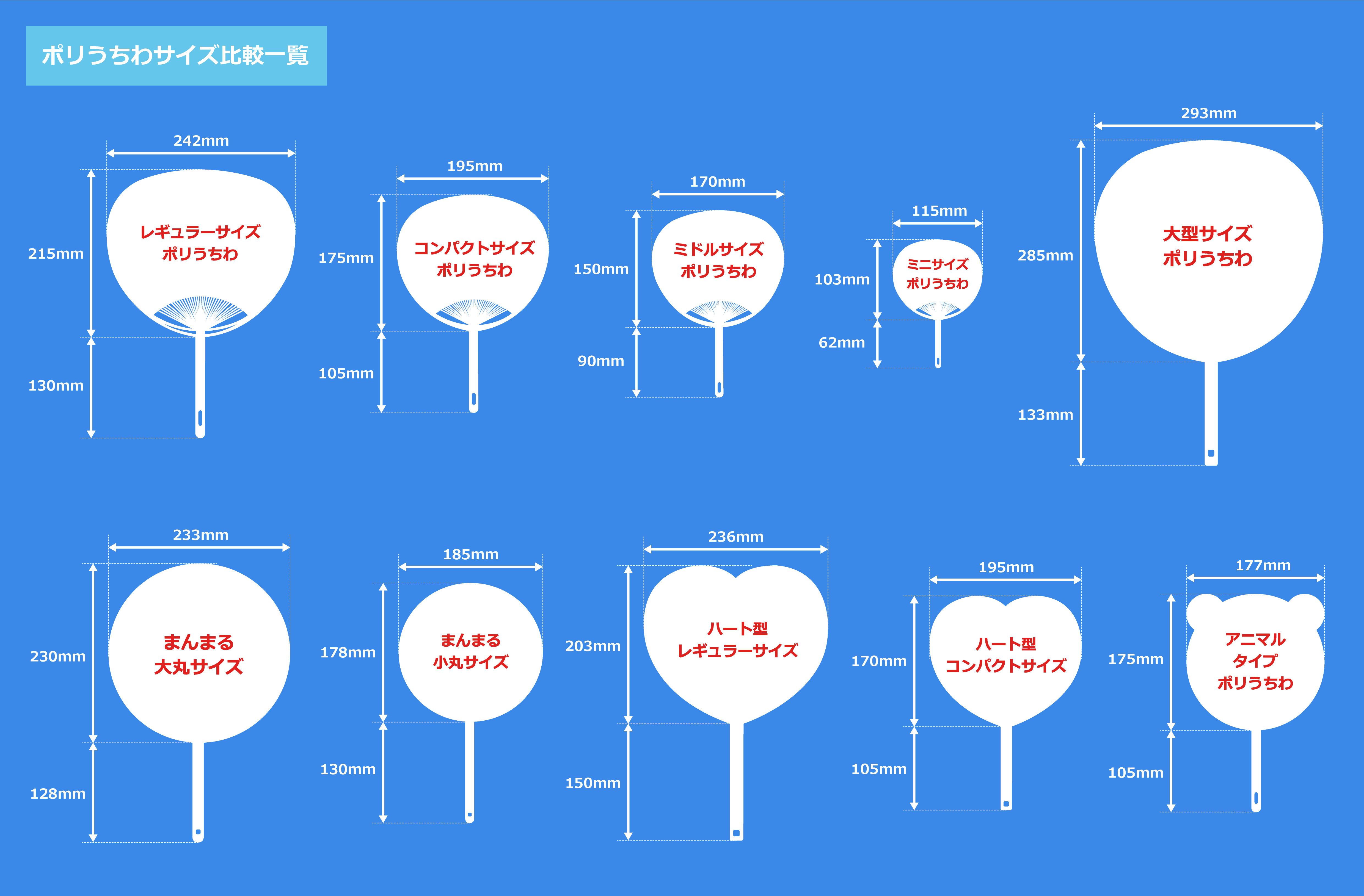 一般的なレギュラーサイズのポリうちわ。安心の国産骨・国内製造だから高品質!
